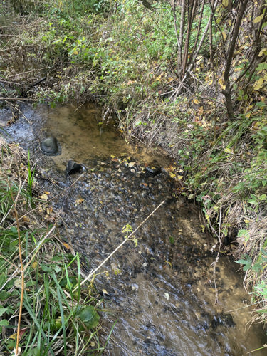 Bagefter gik turen til Åle, hvor vi gik igennem Dybdal/Åle Bæk. Her fandt vi tydelige tegn på gydegravninger inde i byen. Vi luftede manuelt de gydebanker, vi kunne finde nedstrøms forsamlingshuset. Ved Brædstrupvej har Hedensted Kommune genskabt et stræk af bækken med små slyngninger, vandplanter og træer – og dette stykke så rigtig fint ud.