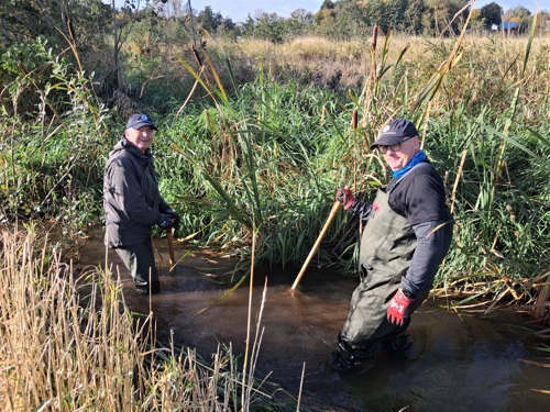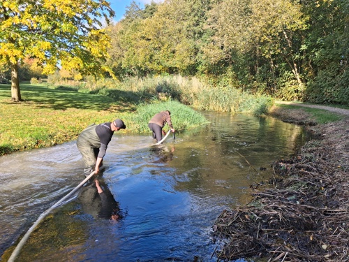 I weekenden var vi en håndfuld af vores frivillige medlemmer ude at spule og lufte gydebanker i vores lokale vandløb.
