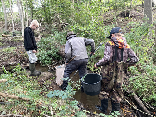 Mest interessante var det at se effekten af vores egne projekter ved Robækken og Haldrup. Ved Robækken var der begrænset succes, men vi fangede flere ål. De bliver sat ud i Bygholm sø, og ser ud til at sprede sig godt opstrøms. Haldrup viste sig at gemme godt med yngel og også en enkelt rigtig, vild ål.